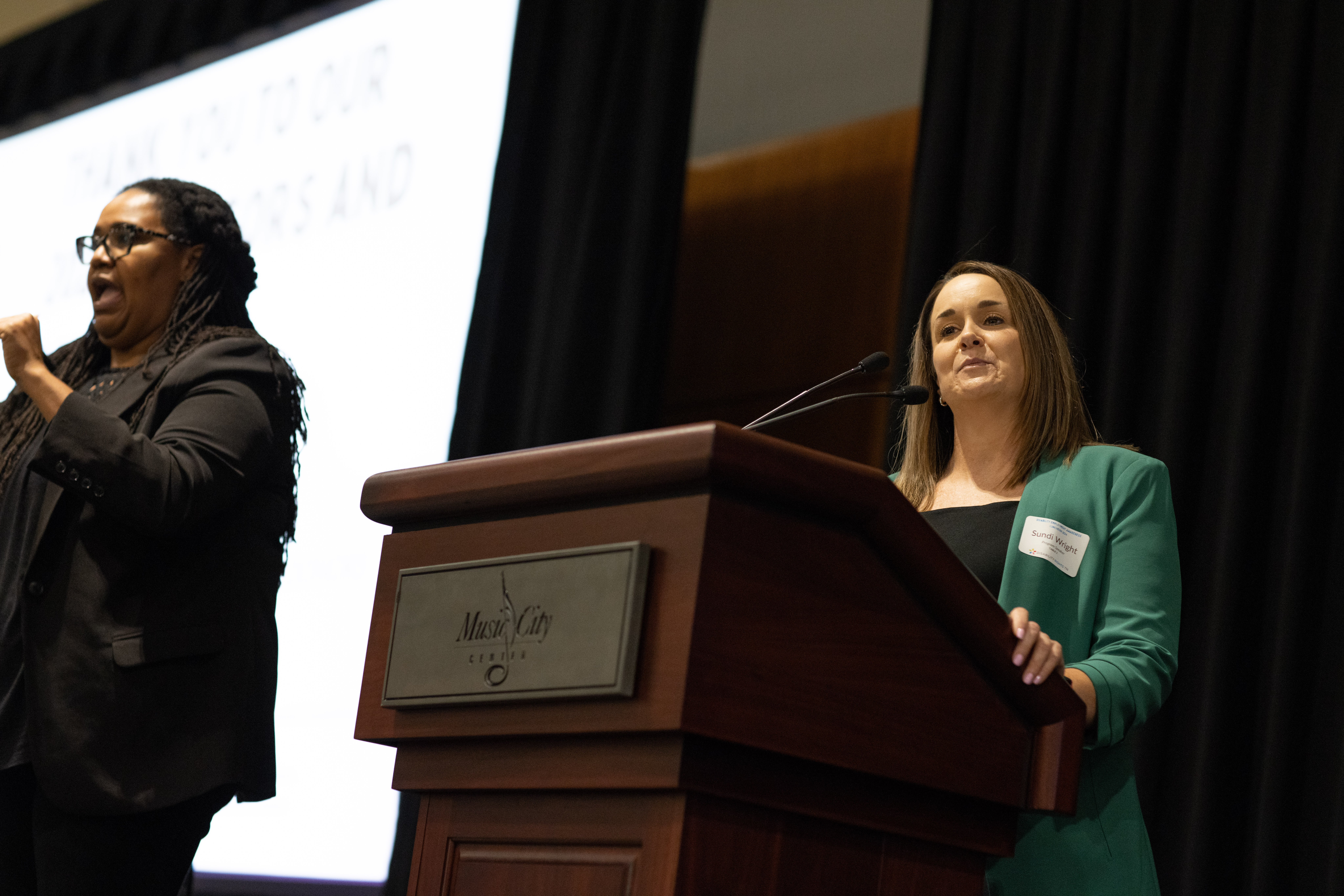 Sundi Wright, Human Resources Administrator at the Tennessee Department of Human Resources, spoke candidly about her experience with an invisible disability. Wright stressed the importance of checking the disability box on job applications, advocating for all in the room that the removal of assumptions and stereotypes is what allows employees to thrive in their workplaces.